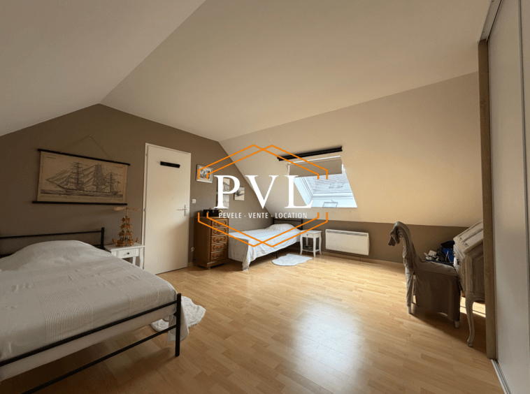 À l’étage, un palier dessert deux grandes chambres de 15 m², une salle de bain, un WC indépendant et un dressing, offrant un espace nuit confortable et bien agencé.
