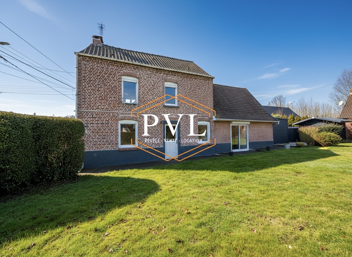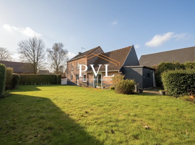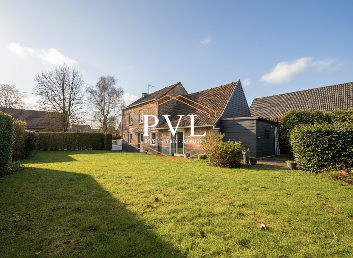 Pévèle Vente Location vous propose cette maison située au coeur de la campagne du village de Cobrieux, une maison individuelle de caractère édifiée en 1936 qui s’implante sur une parcelle de 430 m², comprenant 310 m² de jardin clos, arboré et exposé Sud-Est.