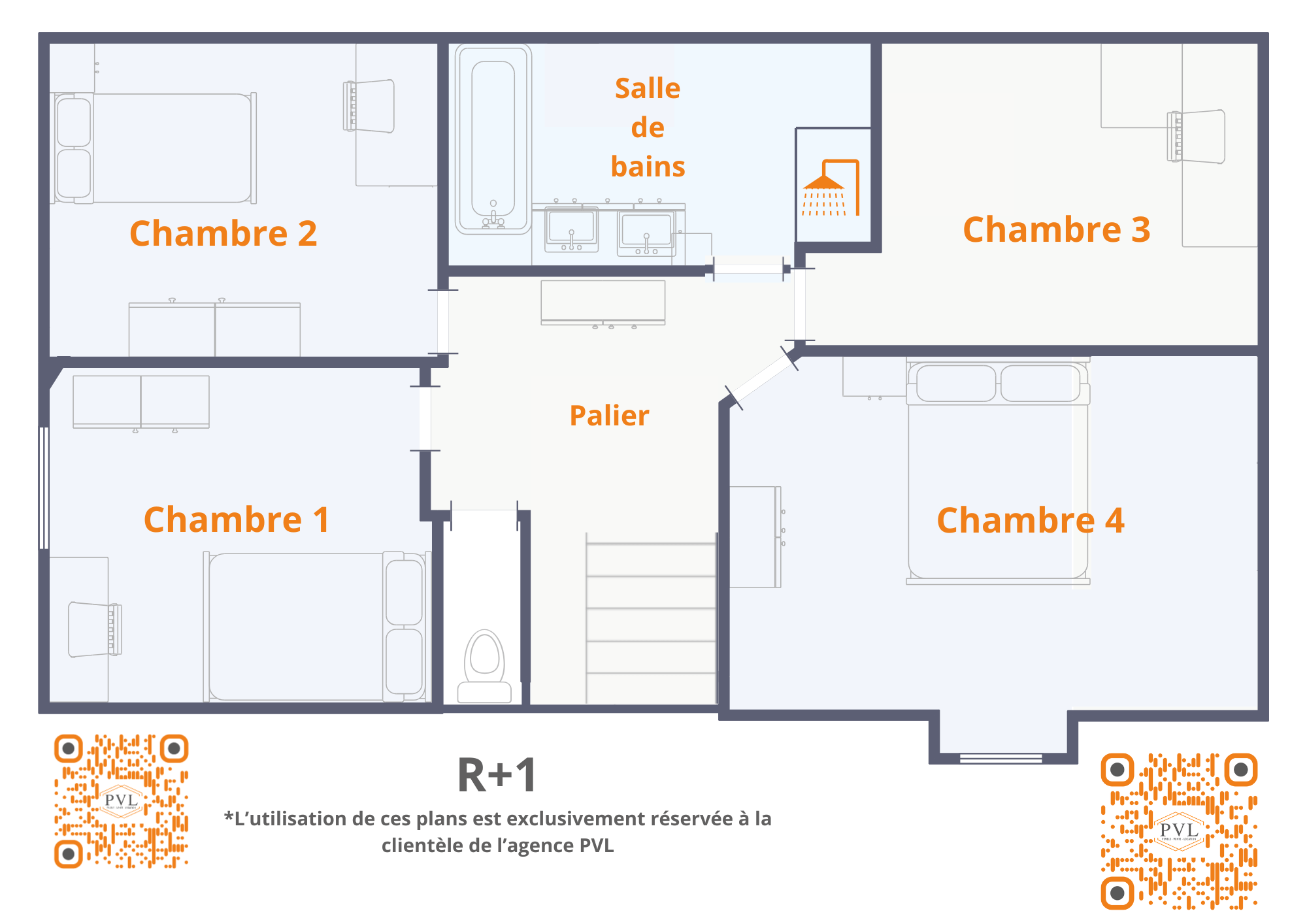 À l’étage, le palier dessert 4 chambres ainsi qu’une salle de bains complète.