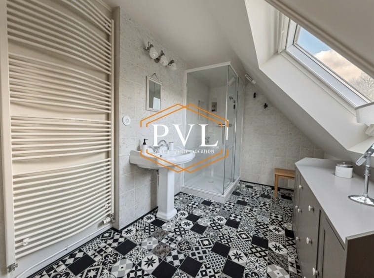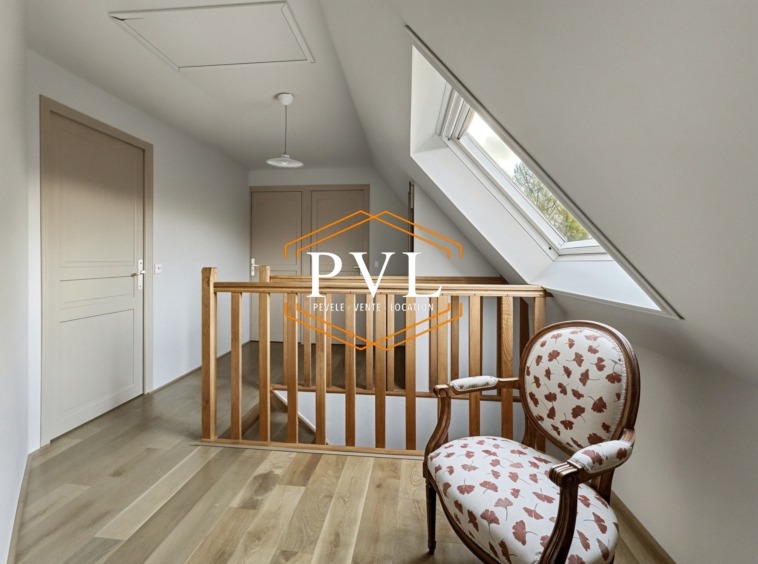 À l’étage, l’espace nuit se compose de deux chambres aux volumes généreux (plus de 10m²), une salle d’eau moderne, un bureau ou dressing ainsi qu’un grand palier.