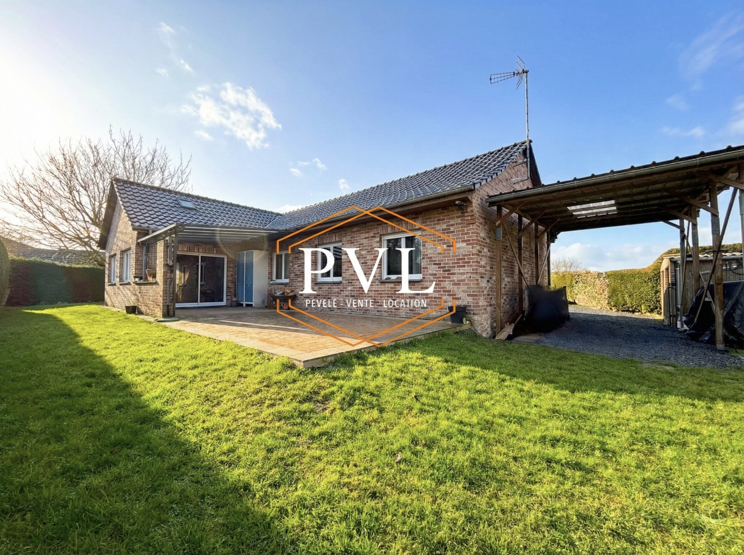 Pévèle Vente Location vous présente cette maison de plain-pied individuelle avec un superbe jardin arboré, dans un cadre verdoyant et agréable.