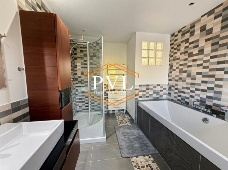 Le bien dispose d’une seconde salle de bains complète, une buanderie, un bureau, un garage pouvant accueillir un véhicule ainsi qu’une cave de plus de 90 m².